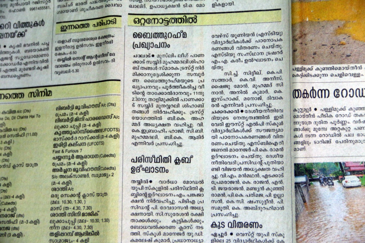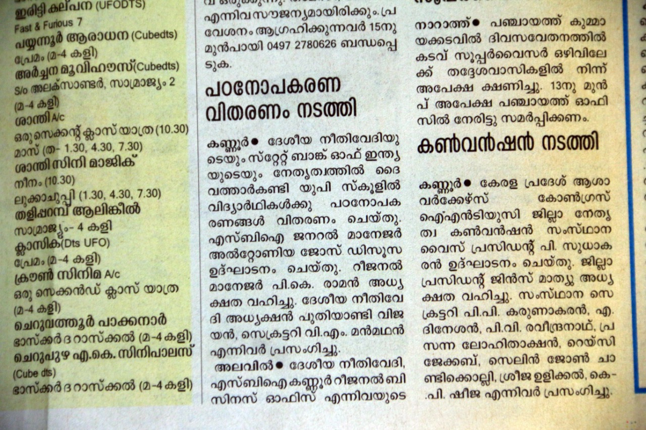 ജൂൺ മാസത്തെ വിവിധ പരിപാടികൾ